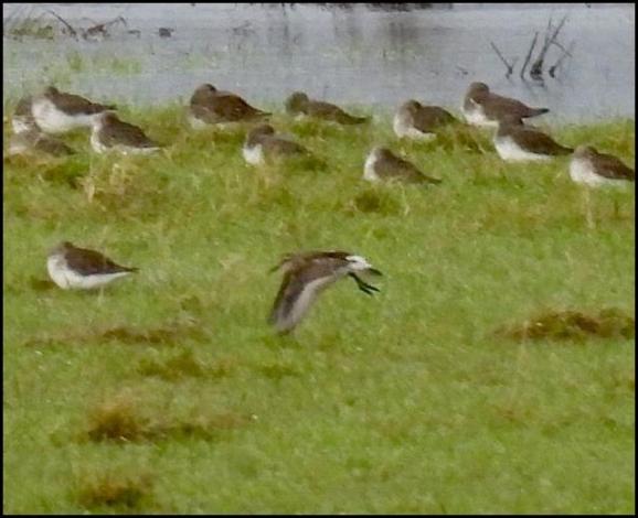 Berkeley shore From Severn House Farm over the high tide 27 Turnstones, 20 Dunlins, 12 Redshanks and two Oystercatchers. (Paul Rich).