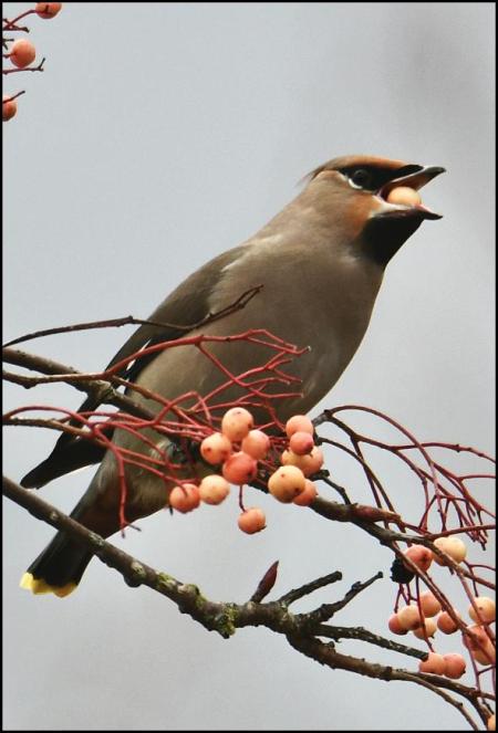 Moreton-in-Marsh Two WAXWINGS still feeding in a Rowan outside the old HSBC Bank this morning. (Jamie Brown).