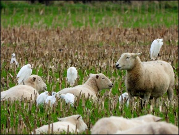 Shepherd’s Patch, Slimbridge 12 Cattle Egrets at SO7293804123 on a stubble field with sheep viewed from the carpark opposite the Tudor Arms. (Mark Hobson/Steve Pullen).
