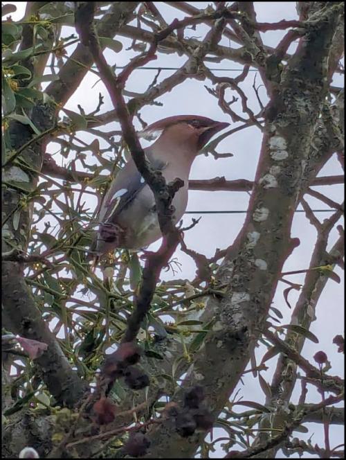 Charlton Kings A WAXWING again at the junction of Bradley Road and Cirencester Road all day. (Lucy Martin).