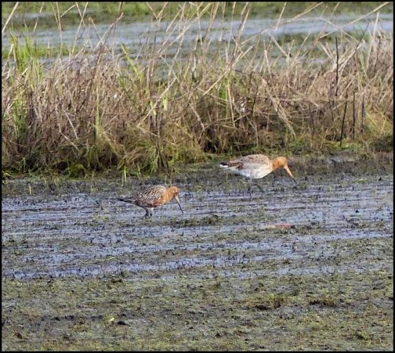 Bar-tailed Godwit with a Black-tailed Godwit by Duncan Dine