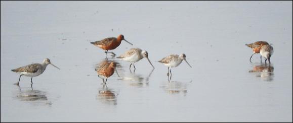 Saul Warth An ARCTIC TERN flew high N after resting briefly on the mud at 8:45am, 13 Bar-tailed Godwits, an Avocet, a Whimbrel, a Curlew, a Common Sandpiper, five Oystercatchers, 12 Dunlins, 18 Swallows, 16 Sand Martins, a pair of Stonechats, two Whitethroats, two Blackcaps and a Roe Deer. (MK).
