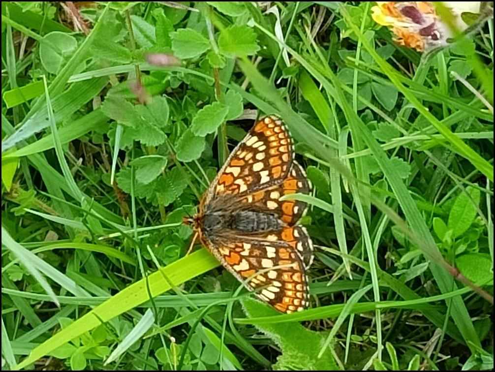 Whittington A Marsh Fritillary at Prestbury Hill Butterfly Reserve today. (Ken Heron & Jenny Jones).