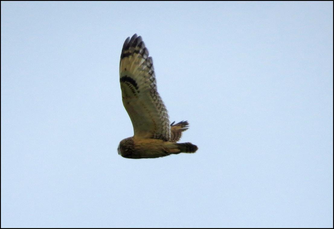 Rodley This morning a SHORT-EARED OWL then headed off over the Severn to Longney. Also two Stonechats, a Whinchat, a Great White Egret and a Buzzard. (Rachel Thomas).