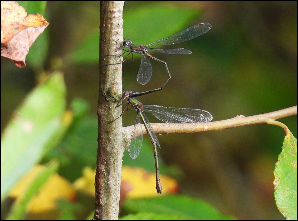 Coombe Hill Meadows A mating pair of Willow Emerald damselflies along the canal at the first footbridge from the car park. (Paul Masters/MK).