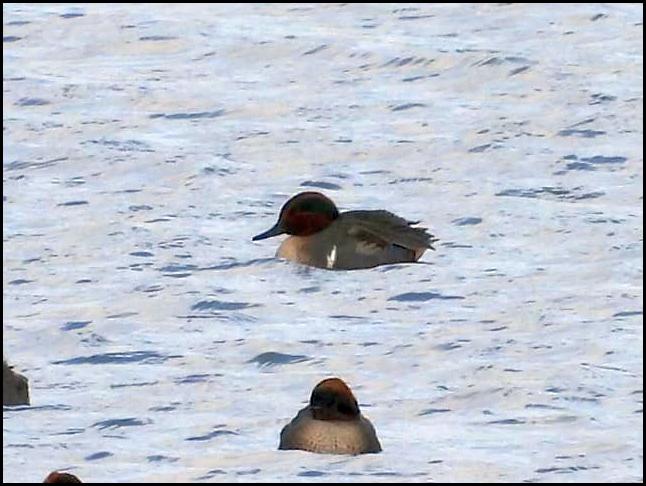 WWT Slimbridge A drake GREEN-WINGED TEAL from Zeiss hide at midday. (Paul Rich).