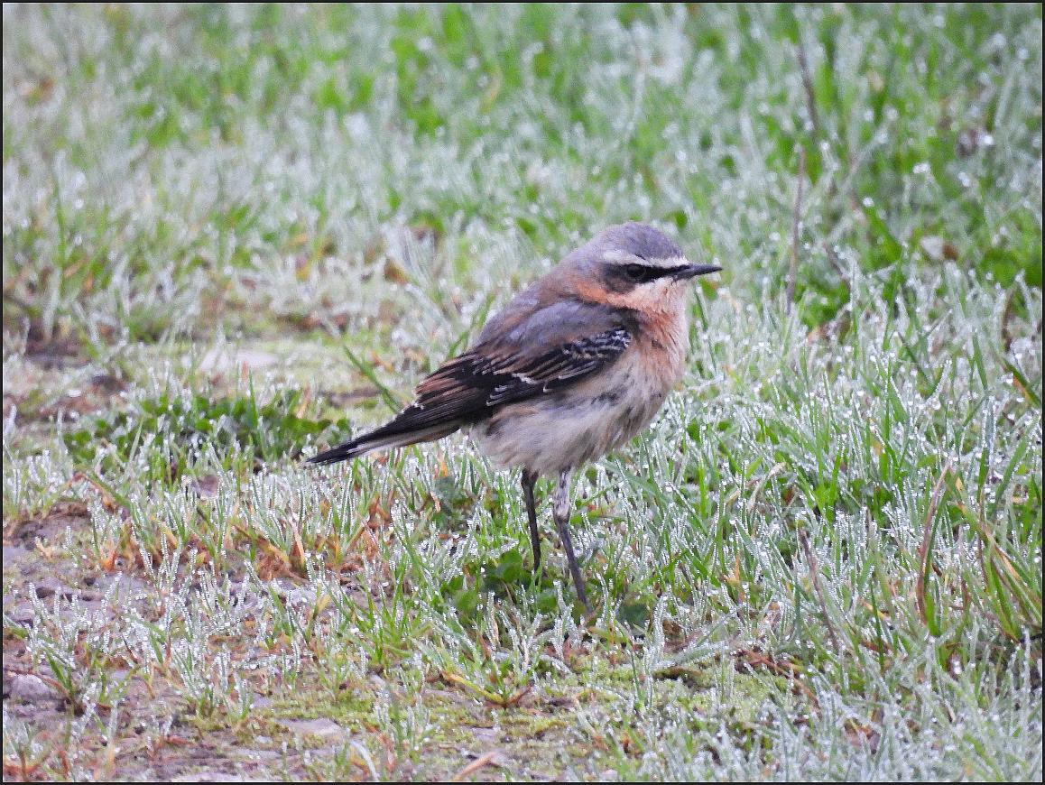 Saul Warth A female Marsh Harrier flew towards Hock Cliff at 8:25am, two Buzzards, a Kestrel, two Little Egrets, seven Shelducks, 20 Curlews, a Grey Wagtail, 11 Meadow Pipits, a male Wheatear still, a Stonechat, three Reed Buntings, three Chiffchaffs, one singing, six Fieldfares and ten Redwings. (MK).