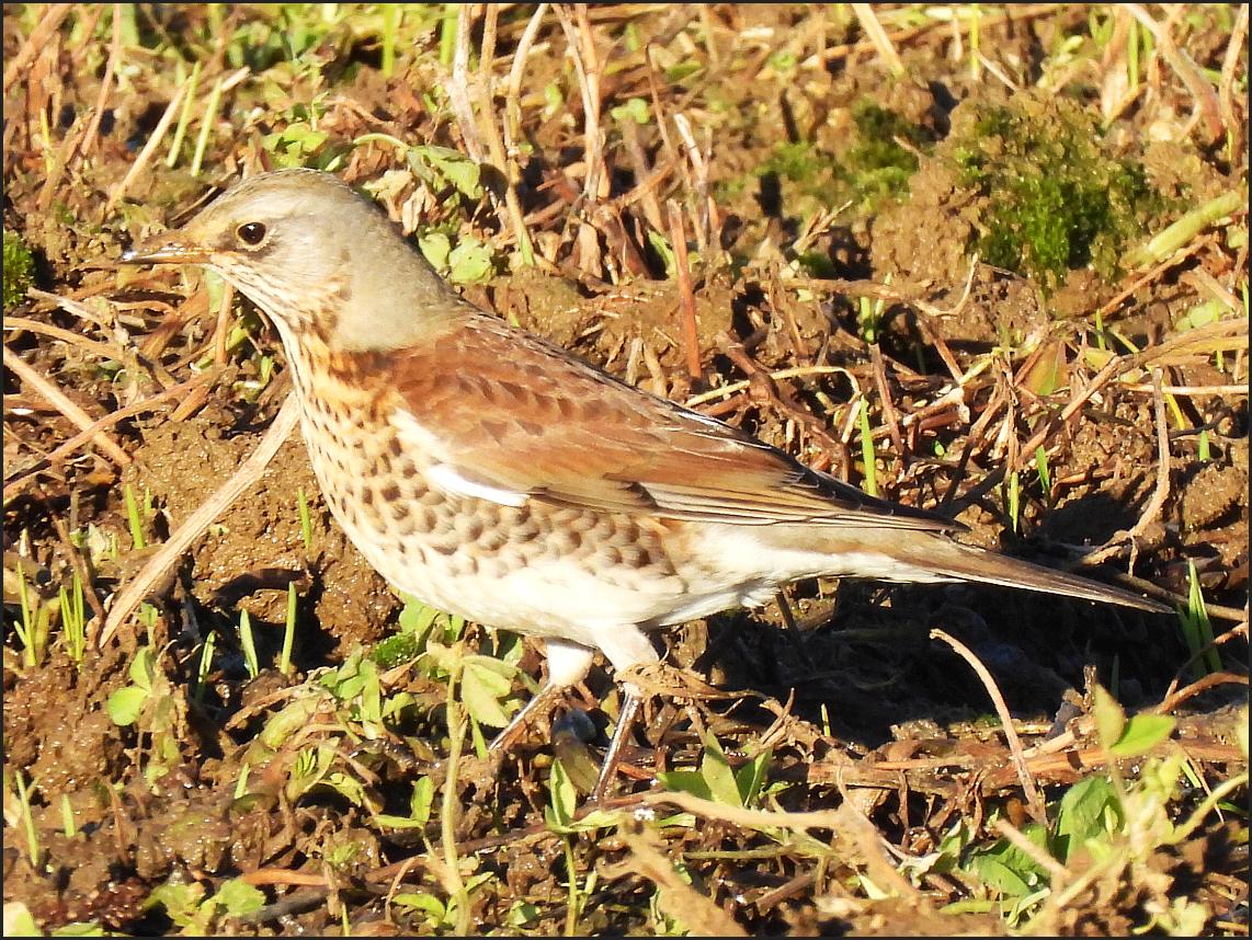 Chavenage Lane 450+ Redwings, including an aberrant one, 80+ Fieldfares, ten Blackbirds, five Mistle Thrushes and three Red Kites. (Terry Grant).