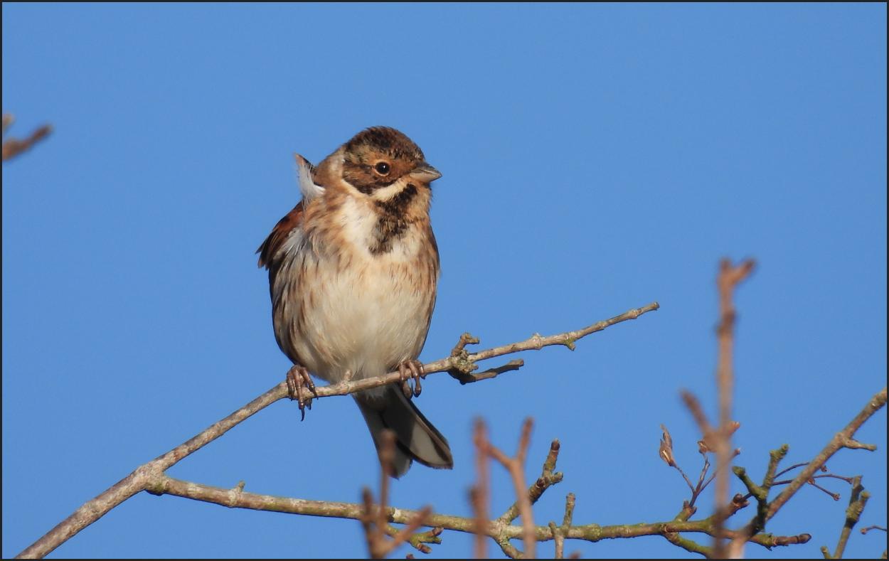 Arlingham At 2pm two Reed Buntings feeding on reed heads close to Passage House, two Grey Herons and a Kestrel, hunting from tree tops and attempted a kill. (Mil Petkovic).