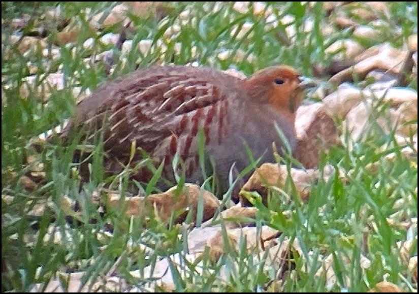 Calmsden A Grey Partridge in the field at the junction of White Way and Dark Lane. (Roberta Goodall).
