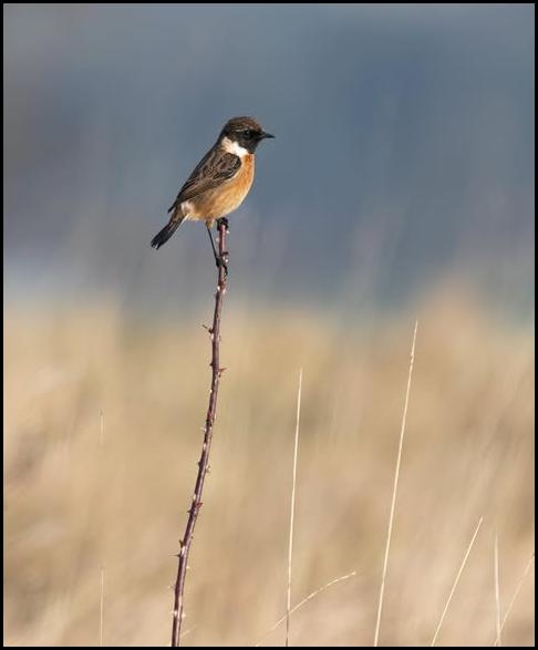 Rodborough Common A male Stonechat this morning and Skylarks singing. (Giles Diggle).
