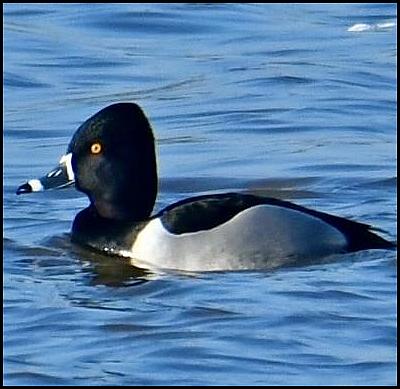 Coombe Hill Meadows The drake RING-NECKED DUCK still today straight in front of the Grundon hide with Tufted Ducks after the fog lifted. (Alan McIlquham).