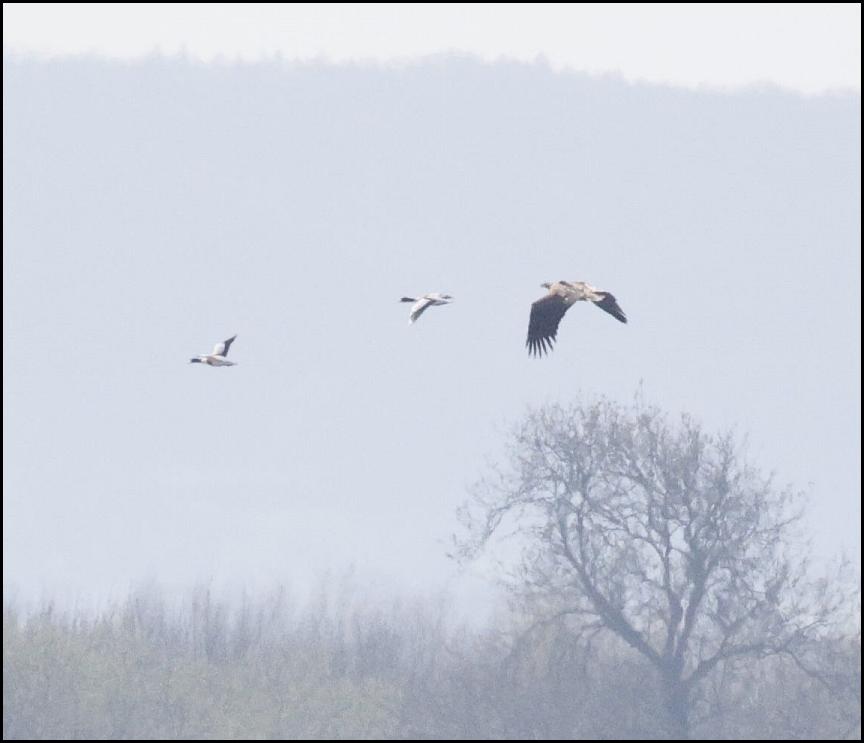 Saul Warth An immature White-tailed Eagle at 11am then flew towards the 100-Acre. Then in view again from 11:45am-12 midday before being lost to view. (Gordon Hodgson/MK). This morning five Dark-bellied Brent Geese still, four Wigeon, 52 Shelducks, 33 Curlews, ten Ringed Plovers, six Dunlins, two Oystercatchers, a Red Kite and a male Marsh Harrier through N, a female Marsh Harrier, 76 Sand Martins, two Swallows, five Meadow Pipits and two Chiffchaffs. (Gordon Hodgson/MK/Jeremy Holland/Jon Dexter).