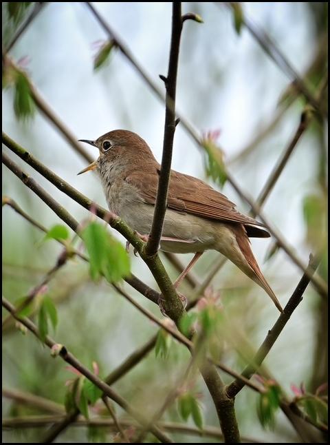 Highnam Woods Two Nightingales singing and showing well, two Hawfinches and an adult male Goshawk today. (Mike Prior).