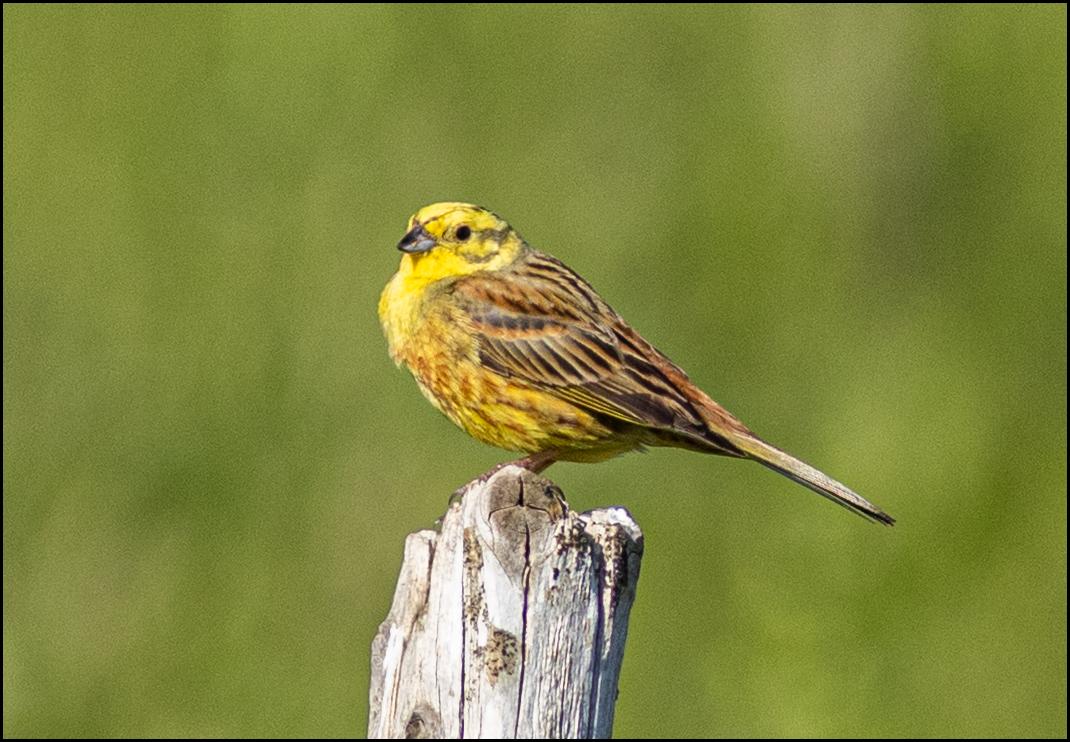 Bisley Along the Wysis Way this afternoon two Yellowhammers seen carrying food into a stone wall under the hedges. (John Fletcher).