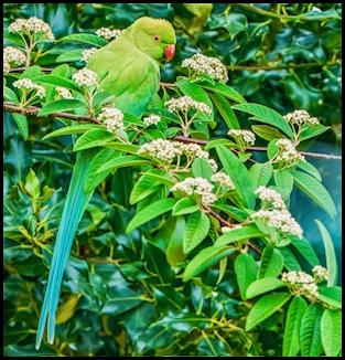 Cheltenham A Ring-necked Parakeet in a private garden near the racecourse today. (Paul Watkins).