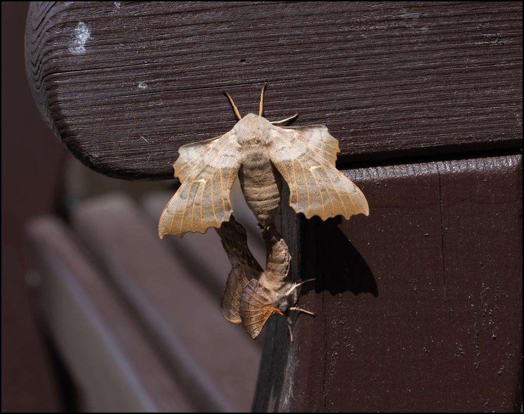 Tewkesbury A Hobby over the town and two mating Poplar Hawk-moths on a bench in the town today. (Chris & Phil Andrews).