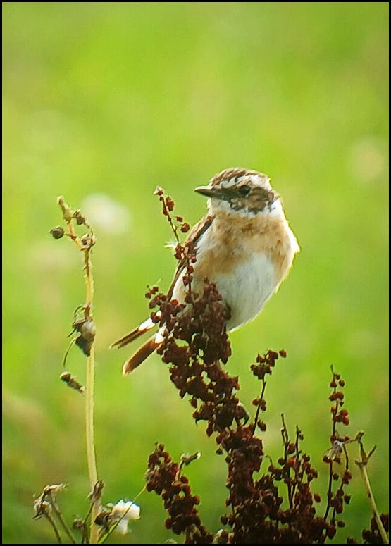Coombe Hill Meadows A male Whinchat in the North meadow this afternoon. (Les Ditchburn).