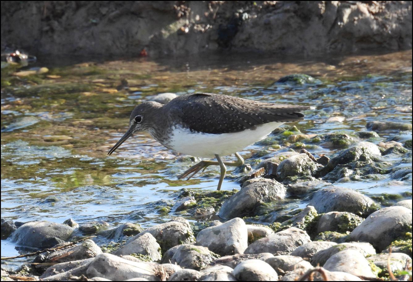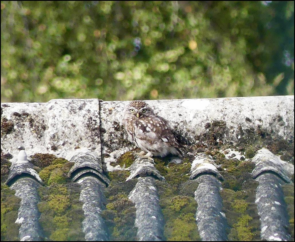 Cotswold Water Park East A Little Owl inside RAF Fairford base. On Pit 132 a WOOD SANDPIPER, nine Ruff and a Hobby. (Duncan Dine).