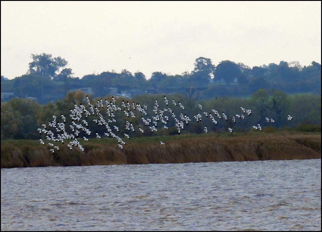Part of the Avocet flock over the estuary by Mike King