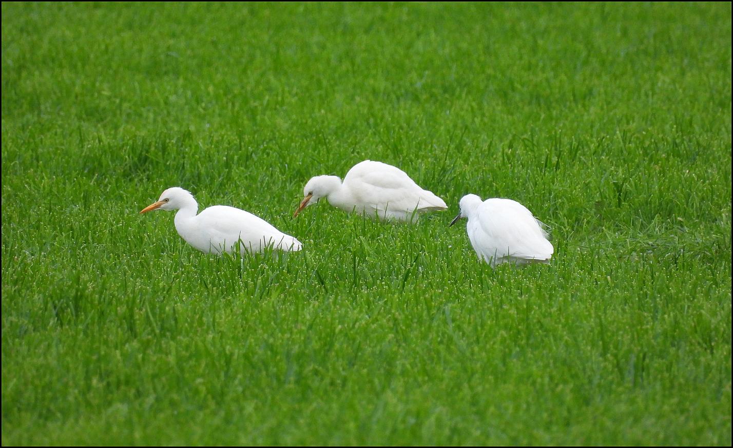 Fretherne Four Cattle Egrets and eight Little Egrets in a field beside the Arlingham Road at SO 74181 08879 at 10am. This is a dangerous road, there is no close parking to this field, either park at Fretherne Bridge or on the verge just before the nurseries and walk. (MK).