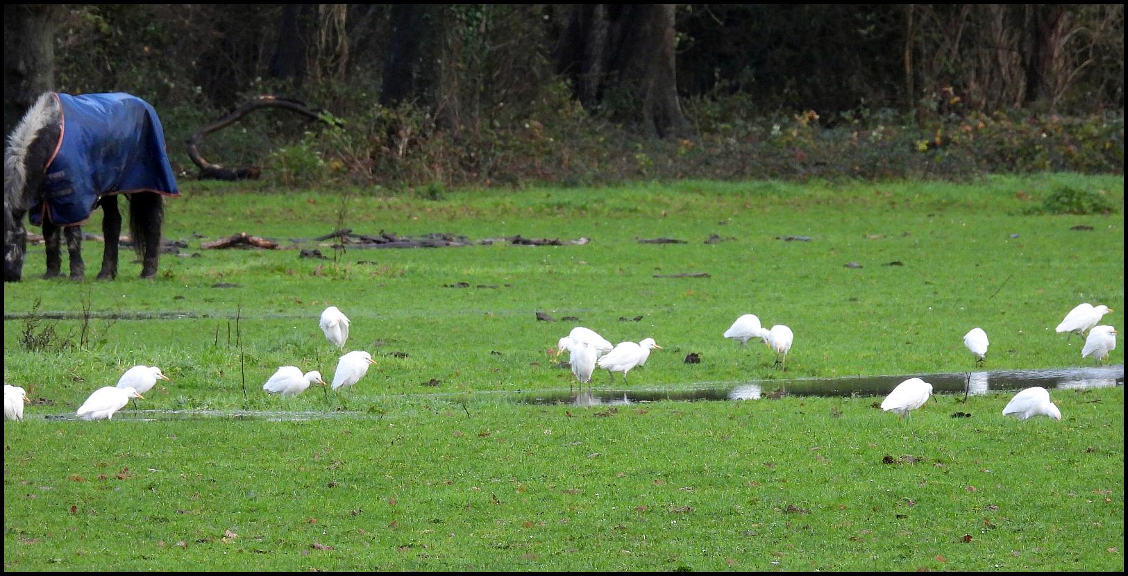 Saul Warth At high tide in very poor conditions five Shelducks, 170 Lapwings flew S, five Cormorants,nine Fieldfares, two Redwings and 14 Chaffinches. 45 Cattle Egrets and two Little Egrets opposite Dunstalls Farm at 10am. (MK).