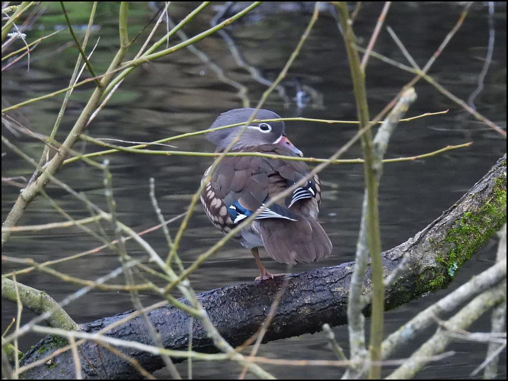 Stroud Six Mandarins (4m, 2f) roosting on the island on Lodgemore pond late afternoon. (MK).