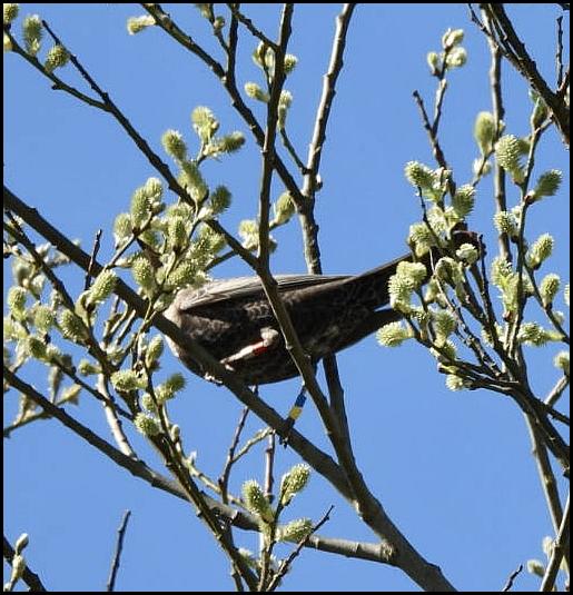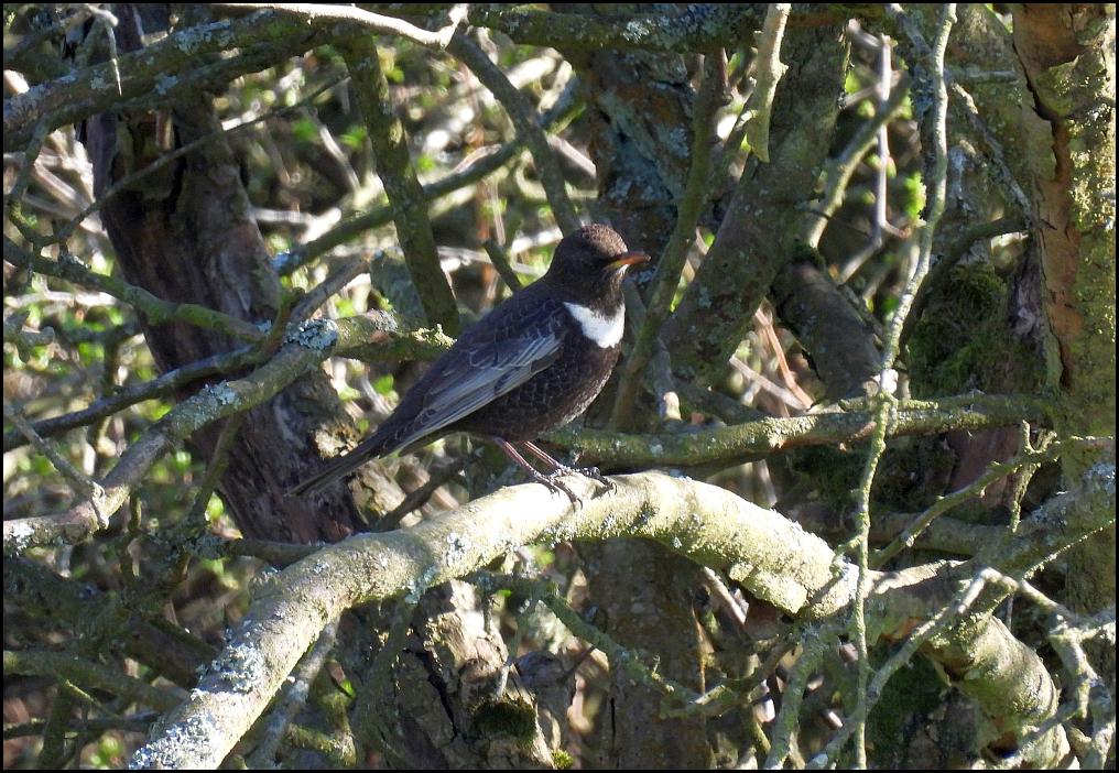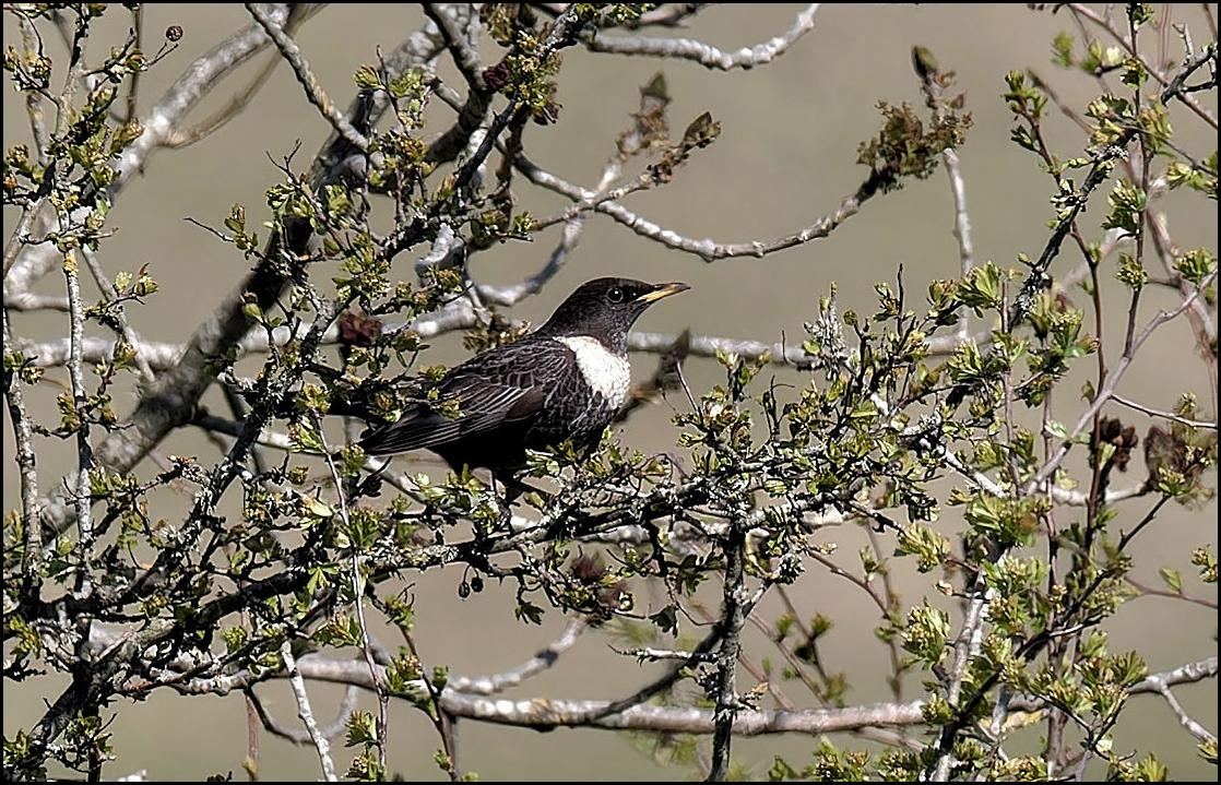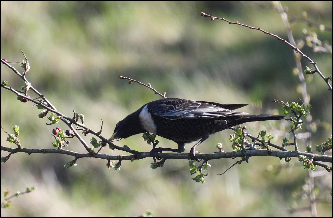 Cleeve Hill Up to seven RING OUZELS today, also four Wheatears, a male Stonechat, a Raven, a Sparrowhawk, two Red Kites and many Skylarks and Meadow Pipits. (Mark Dowie/Steve Rickard/Roberta Goodall/Duncan Dine/Rob & Petra Crofton/MK & BK). Including a ringed female RING OUZEL left leg, red above (BTO or white) right leg, blue, yellow, blue. (Steve Rickard).