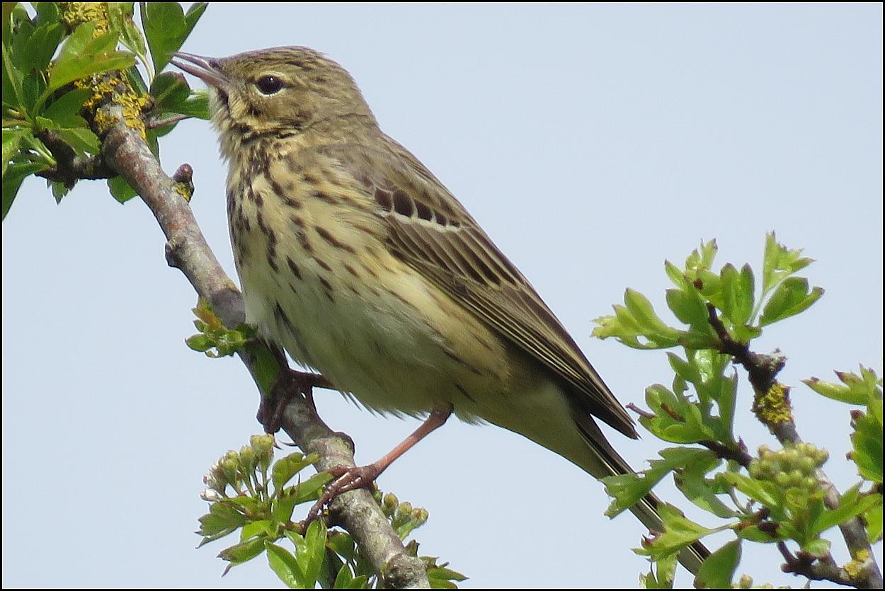 Prestbury Hill Reserve A Tree Pipit, a Green Woodpecker, a Great Spotted Woodpecker, Stock Dove, Linnet, Yellowhammer, Whitethroat, Willow Warbler, Chiffchaff and Song Thrush today. Butterflies included Brimstone, Holly Blue, Speckled Wood, Orange Tip and Green Hairstreak. (Cottia Howard).
