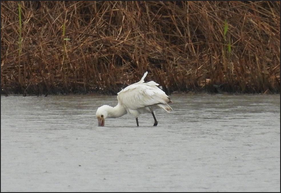 Cotswold Water Park East The escaped Scarlet Ibis with a Great White Egret and a Little Egret on the flooded meadow behind Pit 114 today. (Ian Sherriffs).